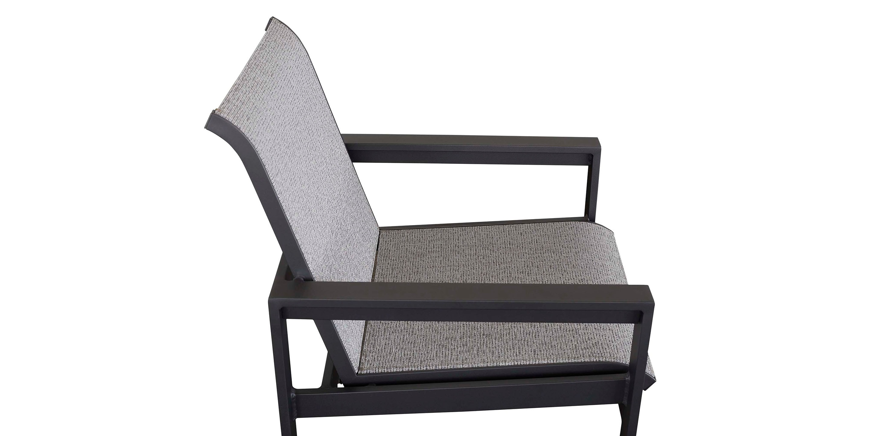 Have a seat and be ready to linger. The comfort of the Bonavista Dining Chair keeps the gathering going. Stylish and easy, these ergonomic sling-style chairs, with their durable PVC-coated nylon fabric, make your outdoor dining spot complete. The clean track arm style defines the look and makes a chair perfect for lounging. In your choice of five powder-coated aluminum finishes, and several sling fabric colors neatly tailored to match your outdoor vibe. All are made in the USA.